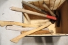 489. Trälåda med yxor 3 st och yxskaft 4 st