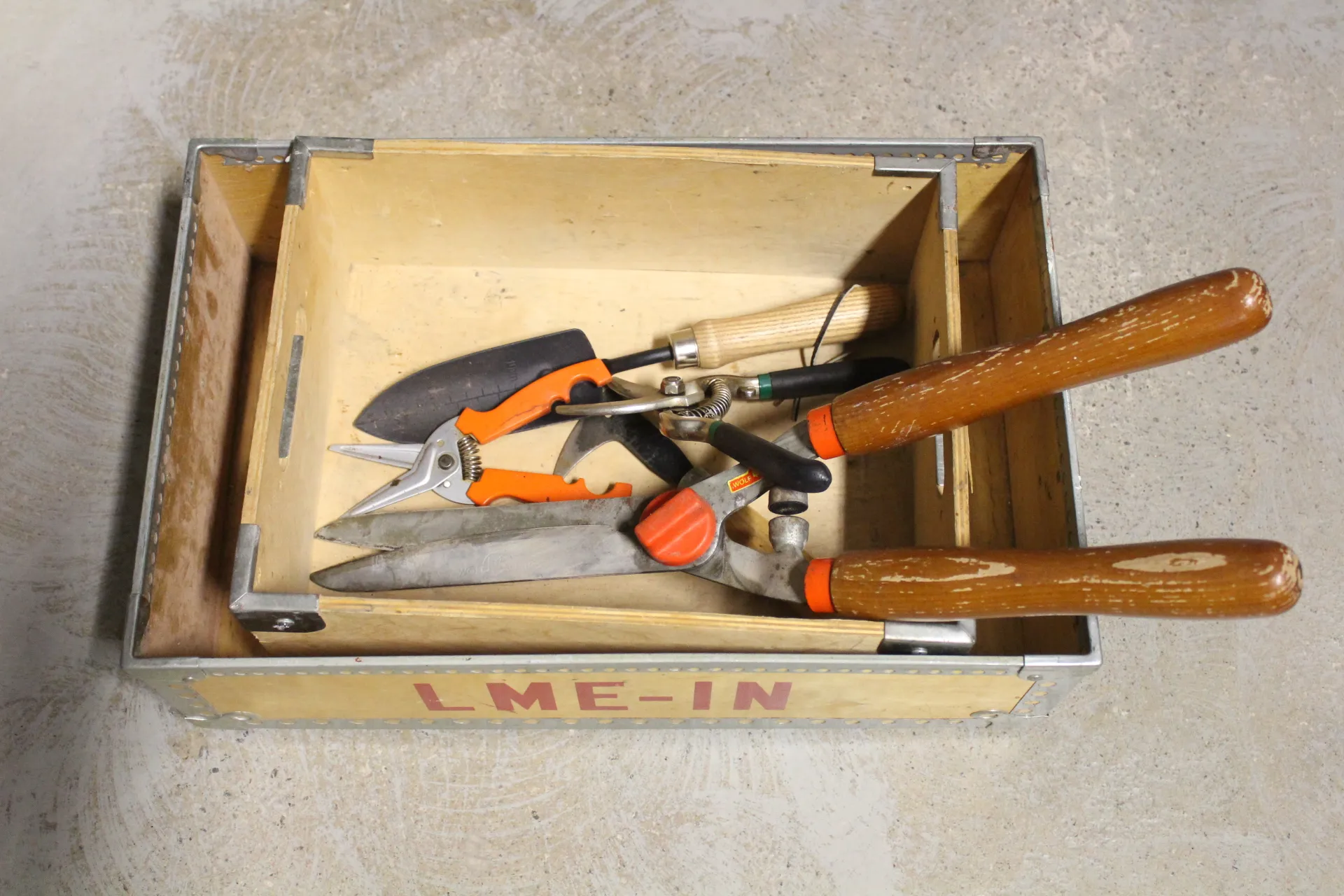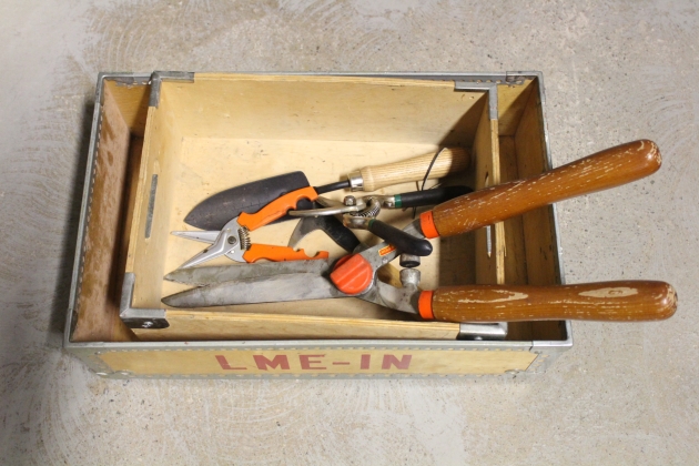 499. Trälådor 2 st och diverse trädgårdsredskap