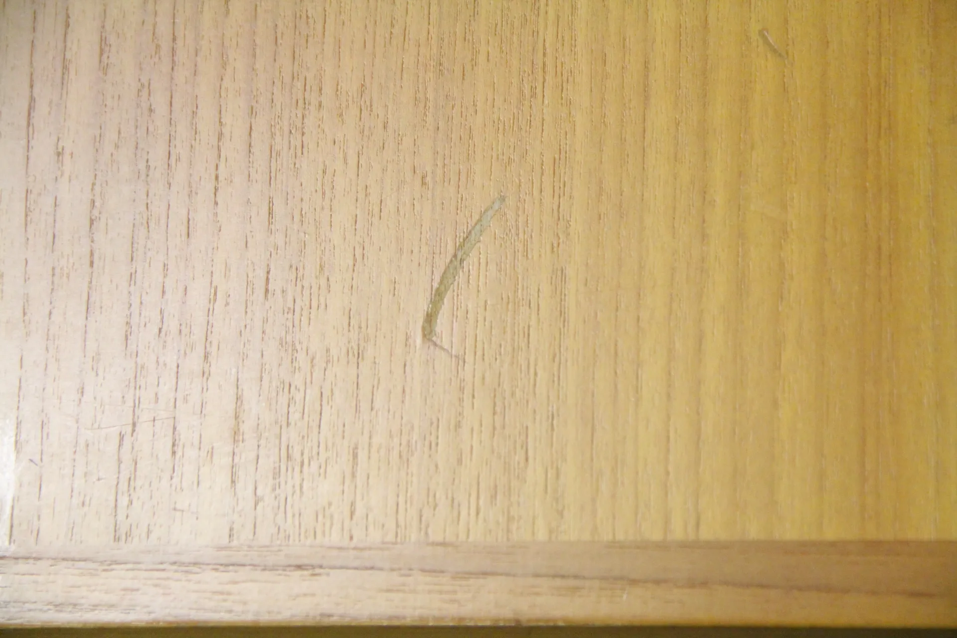 H: 55 cm, 130 x 40 cm, vattenringar och repor på skivan