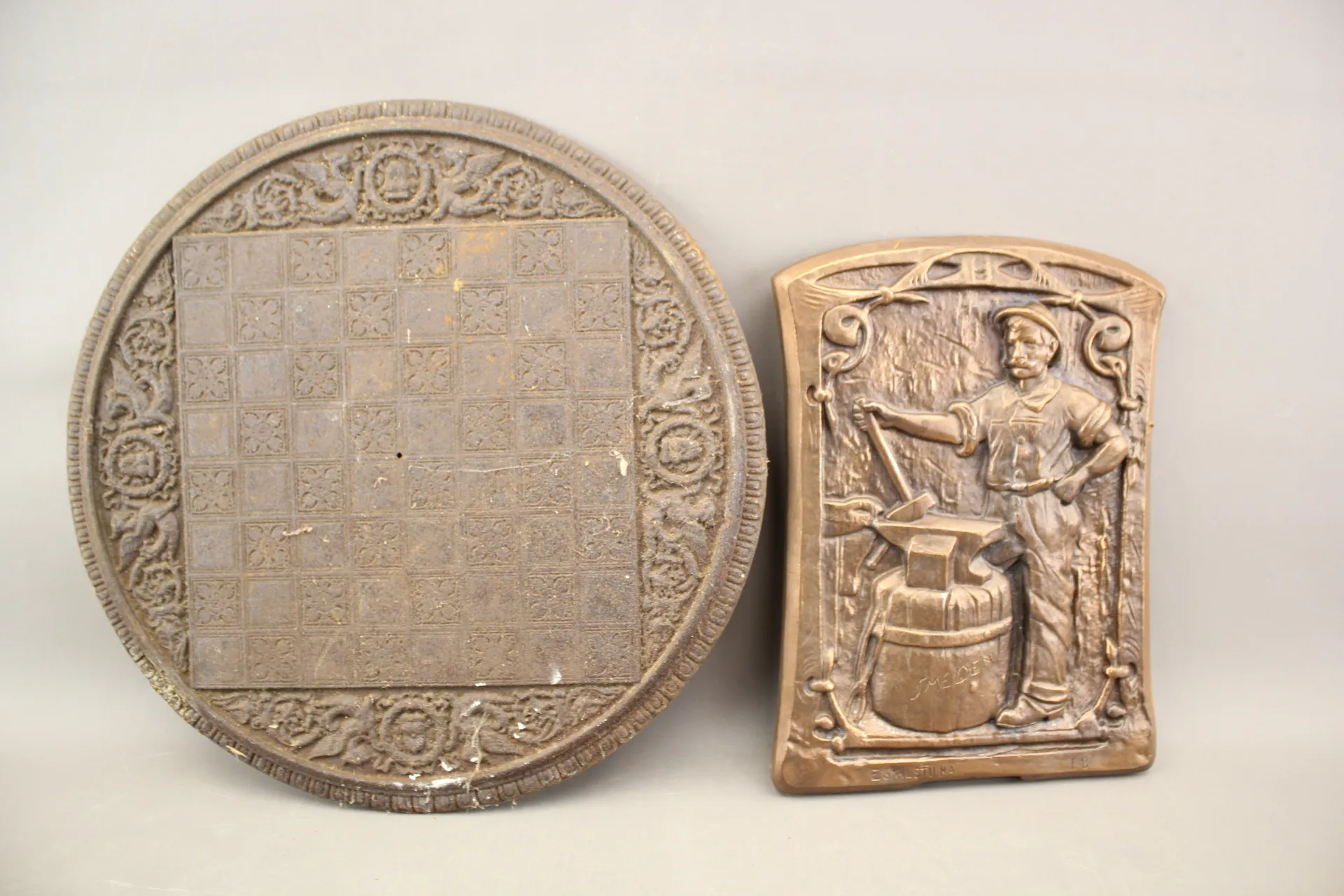 106. Väggdekoration och schackbräde i metall