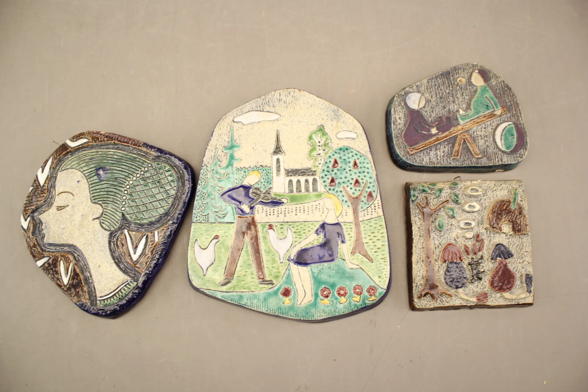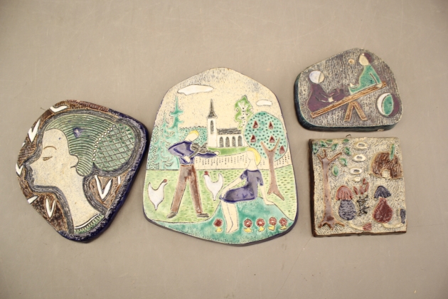 158. Väggdekorationer 4 st varav 3 st sign Eva