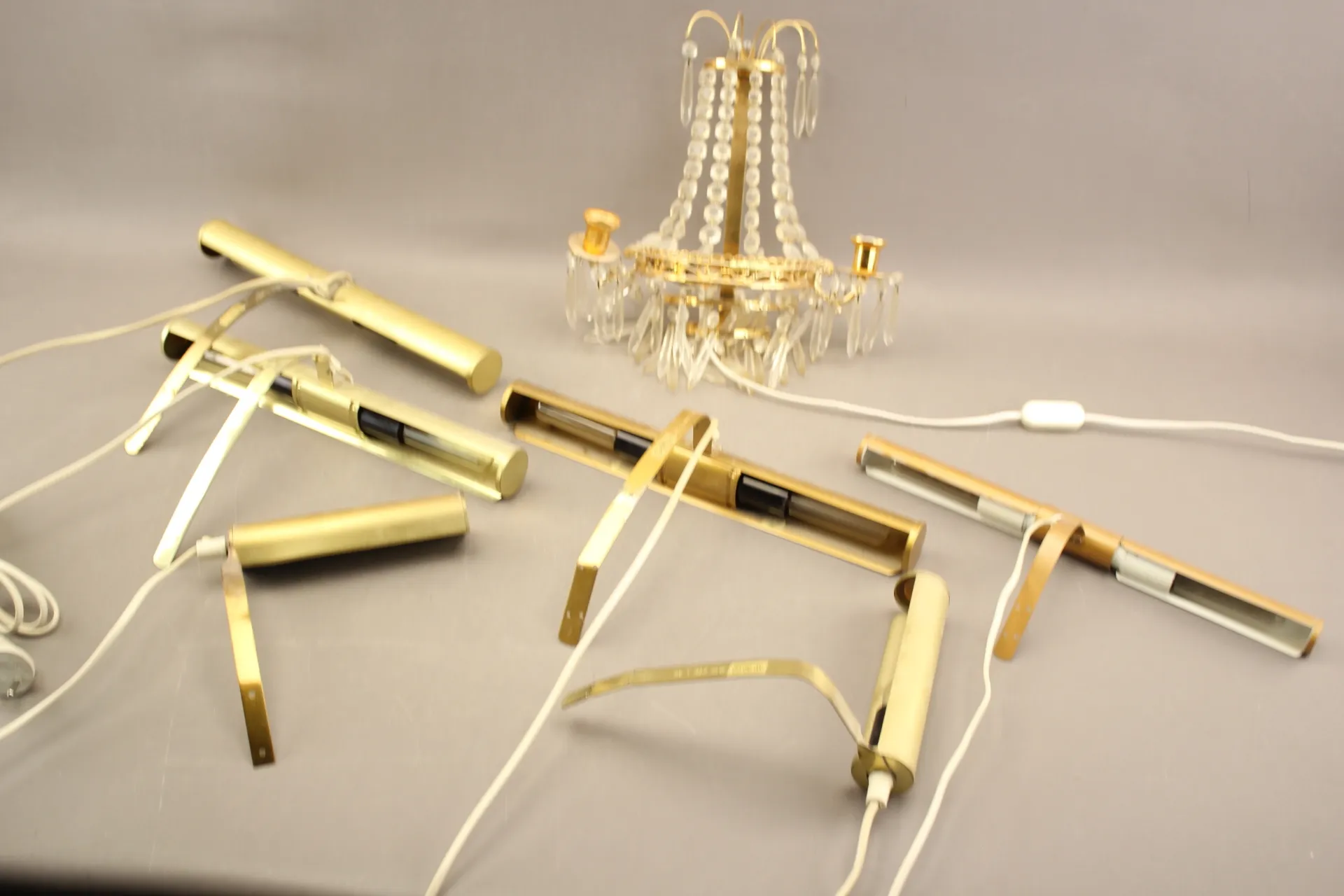 166. Vägglampa med prismor och tavelbelysningar 6 st