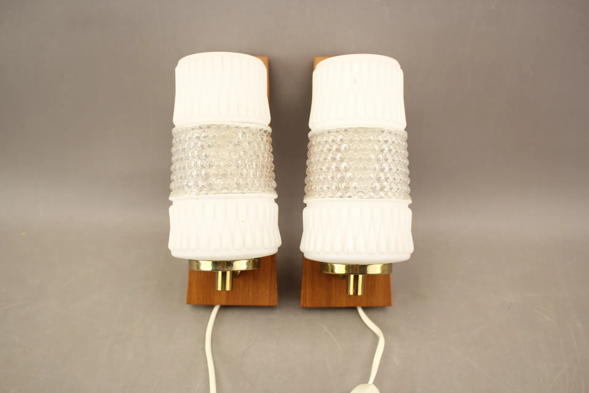 340. Vägglampor i teak, glas och mässing 1 par