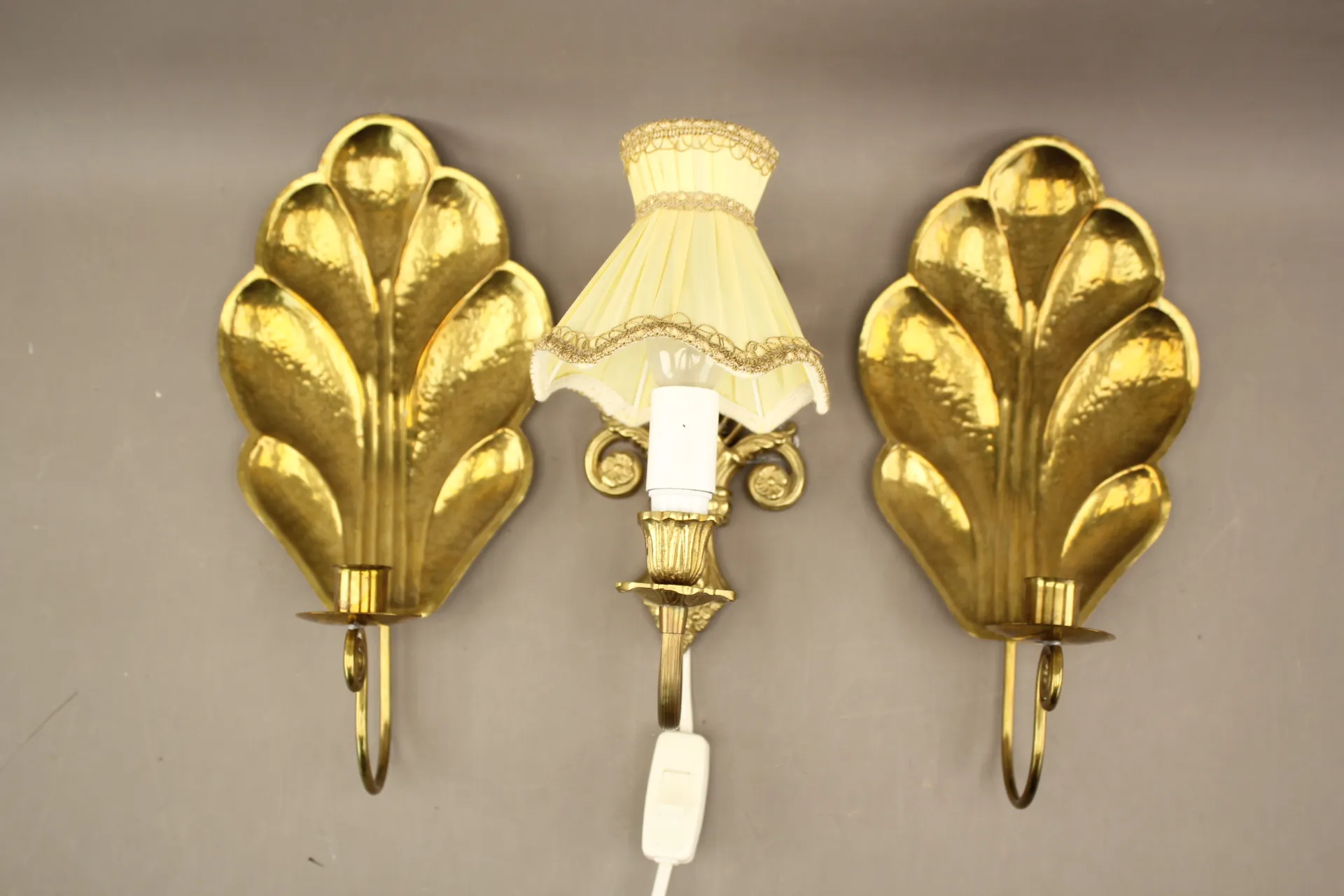 110. Väggljusstakar Lars Holmström 1 par och vägglampett i mässing