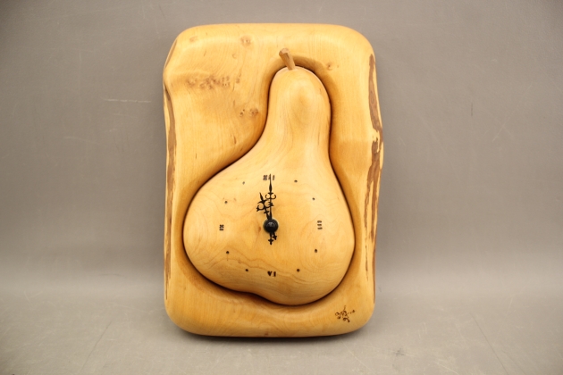 266. Väggur i trä märkt Lönneberga Slöjd & Snickeri signerad