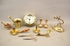 394. Väggur, ljusstakar 5 st, mortlar, mm i bla mässing