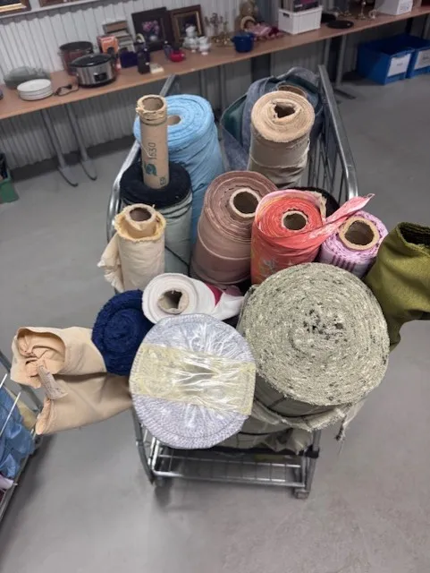 274. Vagn med diverse tyger