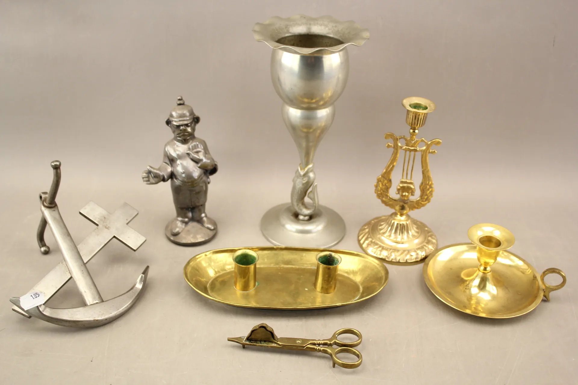 185. Vas i tenn Ernst Svedbom, ljusstakar 3 st, skulptur, mm