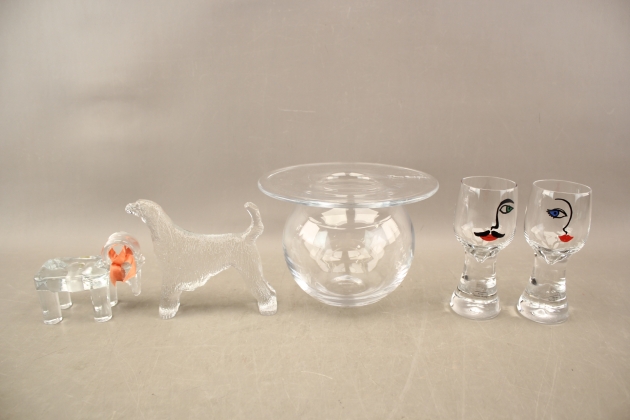507. Vas Magnor Norge, glas 2 st, figurin och ljusstake bla Sea