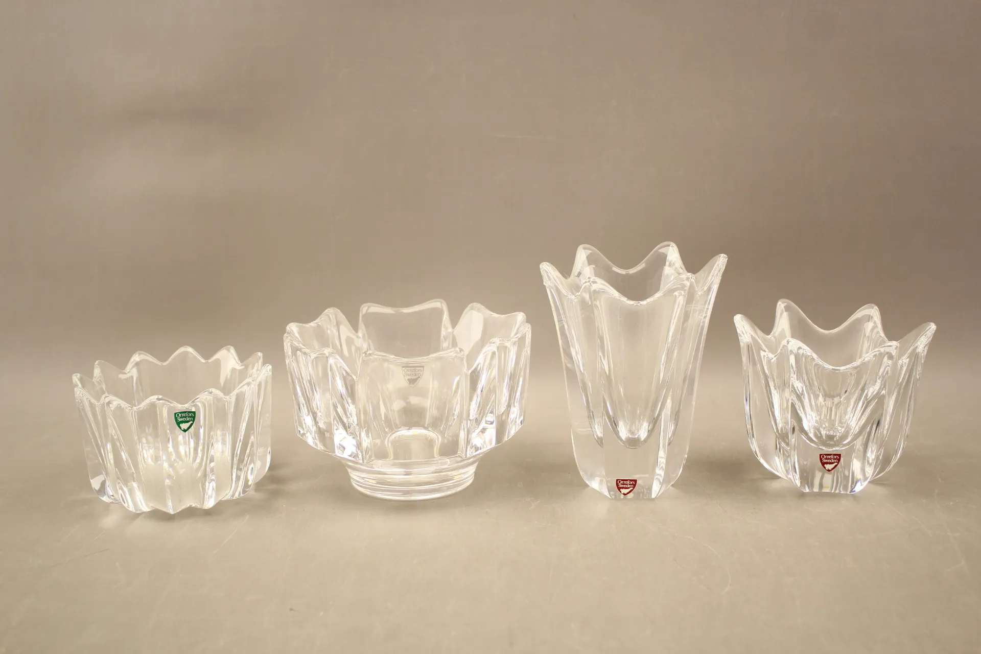 25. Vas och skålar 3 st i kristall Orrefors bla "Belle" Jan Johansson och "Corona" Lars Hellsten