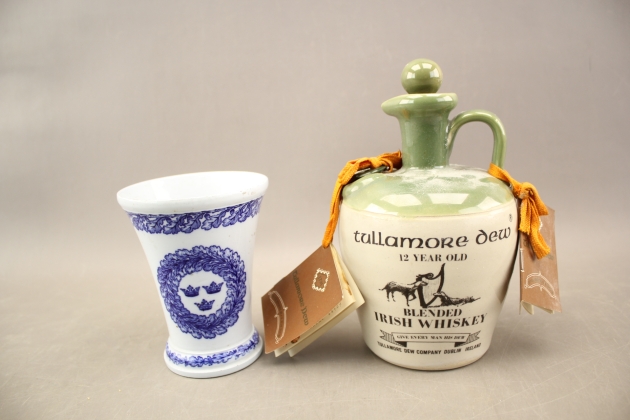 132. Vas "Pinx" Gustavsberg Josef Ekberg daterad 1914 och whiskyflaska England