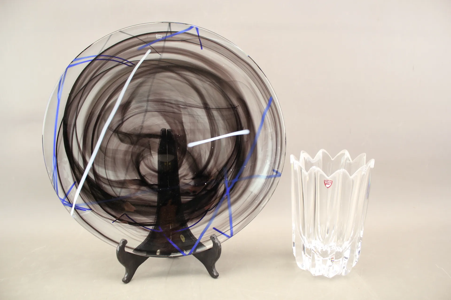 235. Vas sign Orrefors och fat "Contrast" Anna Ehrner Kosta Boda