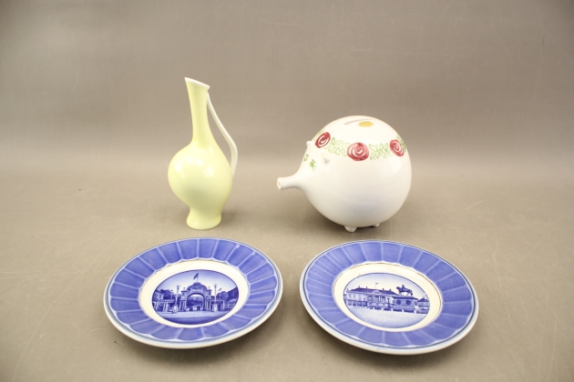 179. Vas, spargris och fat 2 st bla Rosenthal och Royal Copenhagen