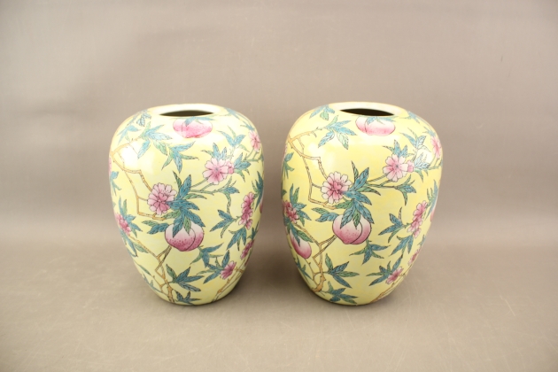 395. Vaser / urnor med asiatiskt motiv 2 st