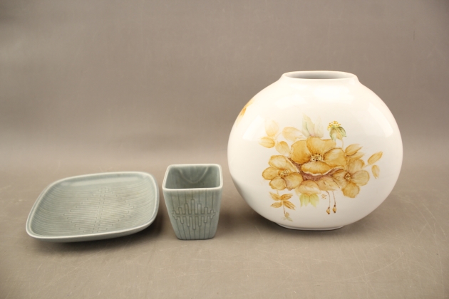 148. Vaser 2 st och fat bla Rörstrand