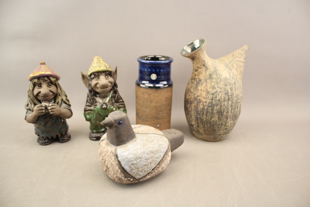 84. Vaser 2 st och figuriner 3 st bla Bergsten och Berg