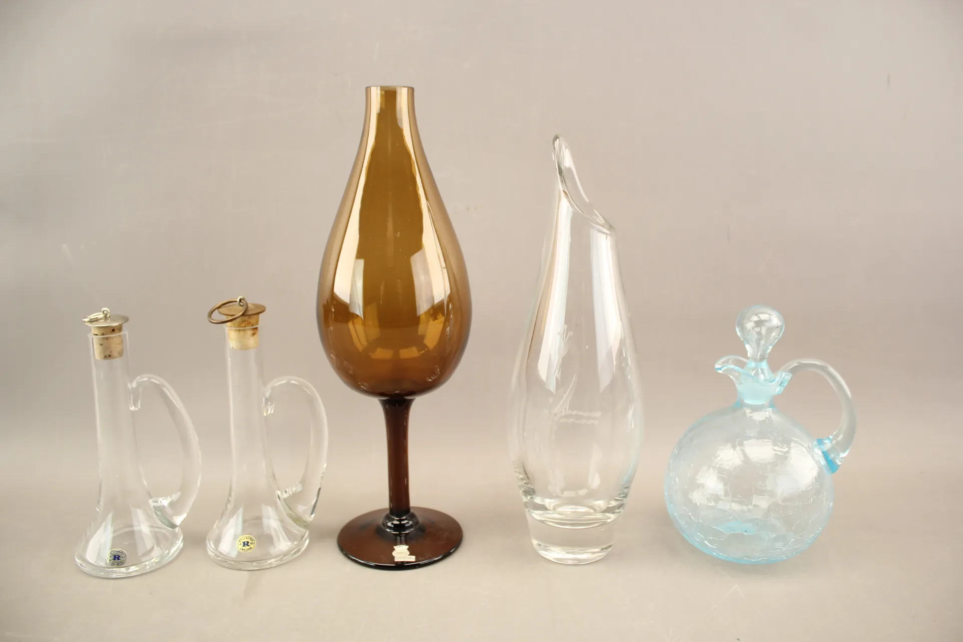130. Vaser 2 st och karaffer 3 st bla Reijmyre och skruf