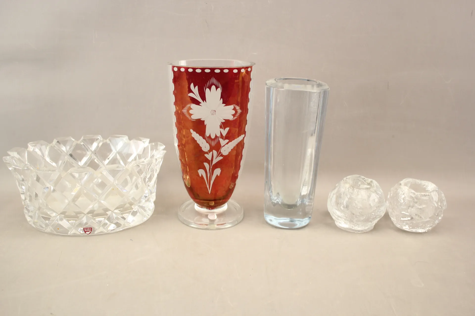 131. Vaser 2 st, skål och ljuslyktor 2 st bla Kosta och Orrefors