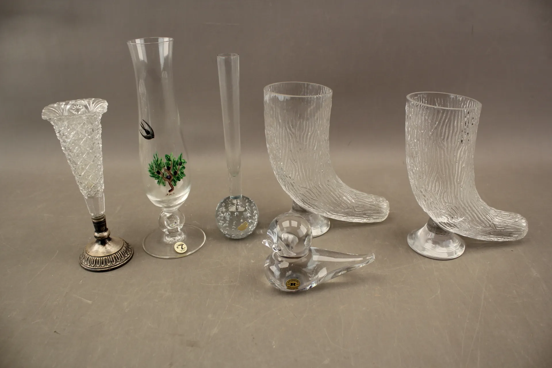 66. Vaser 3 st, dryckeshorn 2 st och glaskonst bla Iittala och Reijmyre