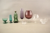 438. Vaser 5 st, skål, mm i bla färgat glas