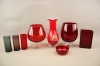 212. Vaser 7 st och skål i färgat glas