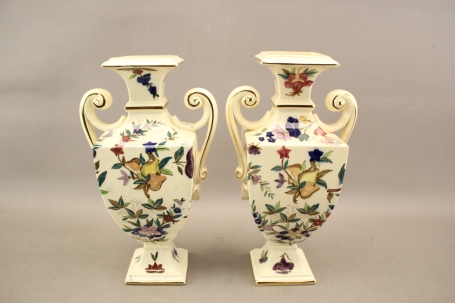 361. Vaser med handmålad dekor Rörstrand "Majolika" 1 par