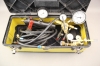 322. Verktygsväska Stanley, manometrar 3 st och slangar