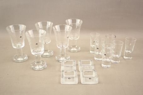 130. Vinglas 5 st, snapsglas 6 st och ljuslyktor 4 st Pukeberg