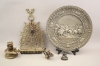 150. Väggrelief Husqvarna, figuriner mm i metall