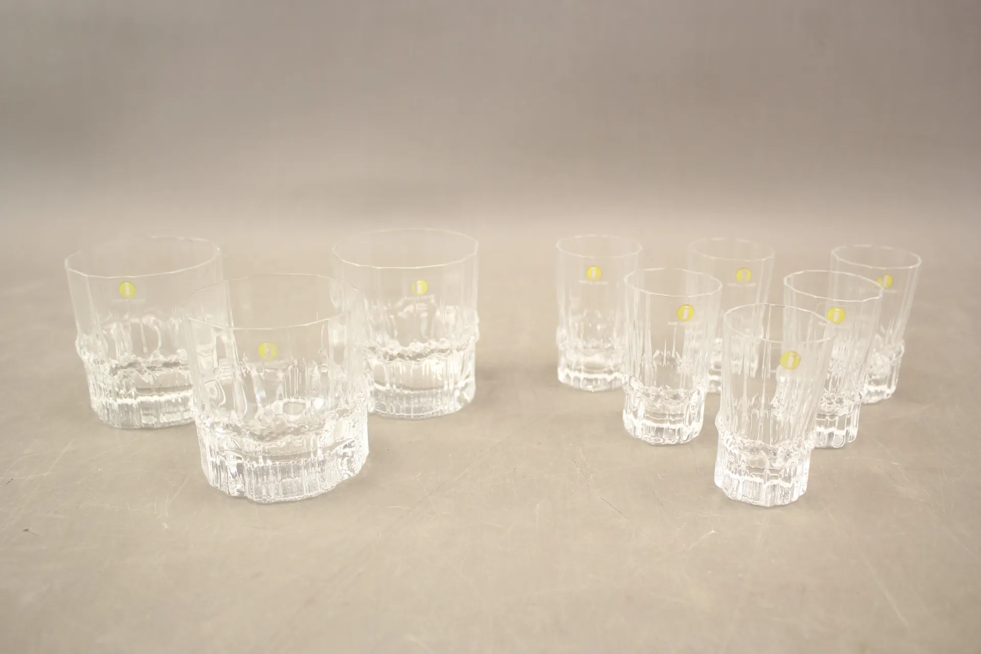 14. Whiskyglas 3 st och snapsglas 6 st "Pallas" Tapio Wirkkala Iittala