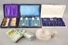 405. Kaffeskedar, skål och sockeretui i nysilver