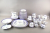 Mattallrikar 12 st, halvtallrikar 12 st, assietter 12 st, djupa tallrikar 4 st, uppläggningsfat 4 st, skålar 2 st, såsskål, kanna, kaffekoppar 12 st, kaffefat 11 st, tekoppar 6 st, tefat 6 st, moccakoppar 4 st, moccafat 4 st, kaffekanna, gräddkanna och sockerskål
