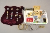 266. Märkessköld med märken, manschettknappar, tändare, mm