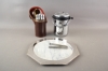 386. Ishink Peacock, flaskschatull och bricka med marmorskiva