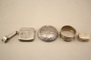 267. Pillerburkar 2 st, servettring och tändaretui i silver