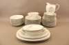Mattallrikar 12 st, halvtallrikar 12 st, assietter 11 st, djupa tallrikar 12 st, uppläggningsfat 8 st och såsskål