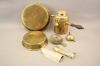 449. Kaffepanna, formar, rivjärn 2 st mm i mässing
