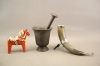 146. Mortel i gjutjärn Ronneby, dalahäst och dryckeshorn