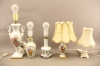 570. Bordslampor i porslin 5 st bla Limoges och Hutschenreuther