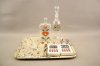 136. Glöggmuggar 15 st, skål, flaskor 2 st mm med bla handmålad dekor