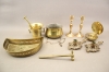 384. Ljusstakar 2 par, mortel, kruka mm i mässing
