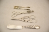 217. Kaktång, druvsax, sockertång och bakelsekniv i silver