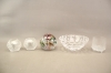 176. Ljuslyktor "Snowball" 1 par, skål Orrefors "Hallon", glas Iittala och brevpress