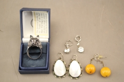 291. Vargring och örhängen 3 par med bla gul bärnsten