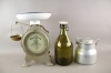 414. Hushållsvåg Eskilstuna, flaska med patentkork och mjölkkanna