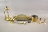 373. Ljusstakar 3 st, skål, mortel mm i mässing