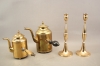 238. Chokladkannor 2 st och ljusstakar 1 par i mässing bla Skultuna och Wästerås