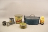 172. Svepask, plåtburkar 2 st, babushka och mått 3 st