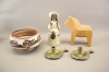 427. Ljusstakar i mässing 1 par, dalahäst, skål och figurin