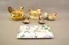 142. Äggömmor 2 st, äggställ 2 st och figuriner 2 st